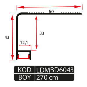 LDMBD6043 - 60x43 mm Alüminyum Ledli Basamak Profili