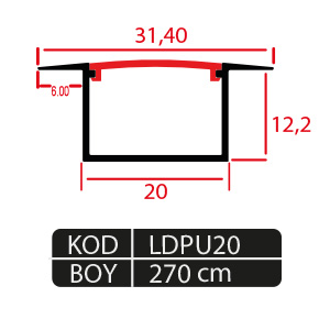 LDPU20 - 20 mm Sıva Üstü Alçıpan Led Profili